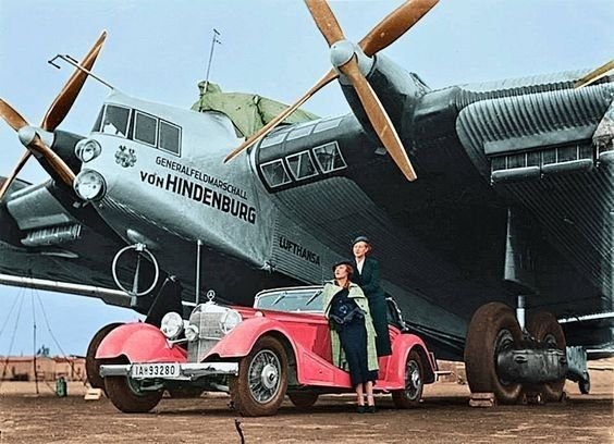 [XユーザーのThe past time womanさん: 「A massive Junkers G.38 "Generalfeldmarschall von Hindenburg" Lufthansa airliner parked beside a classic Mercedes-Benz, circa 1934.
